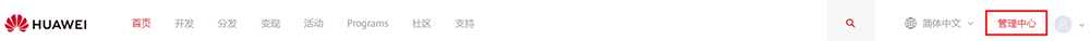 打开华为开发者联盟官网,登录帐号,(登录操作步骤请:参考4.2登录点)。点击“管理中心” 跳转到开发者实名认证页面。