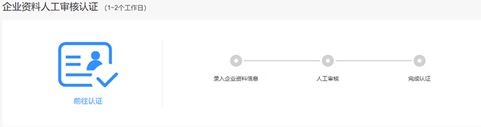 1. 选择企业资料人工审核认证,进入到人工审核认证页面。